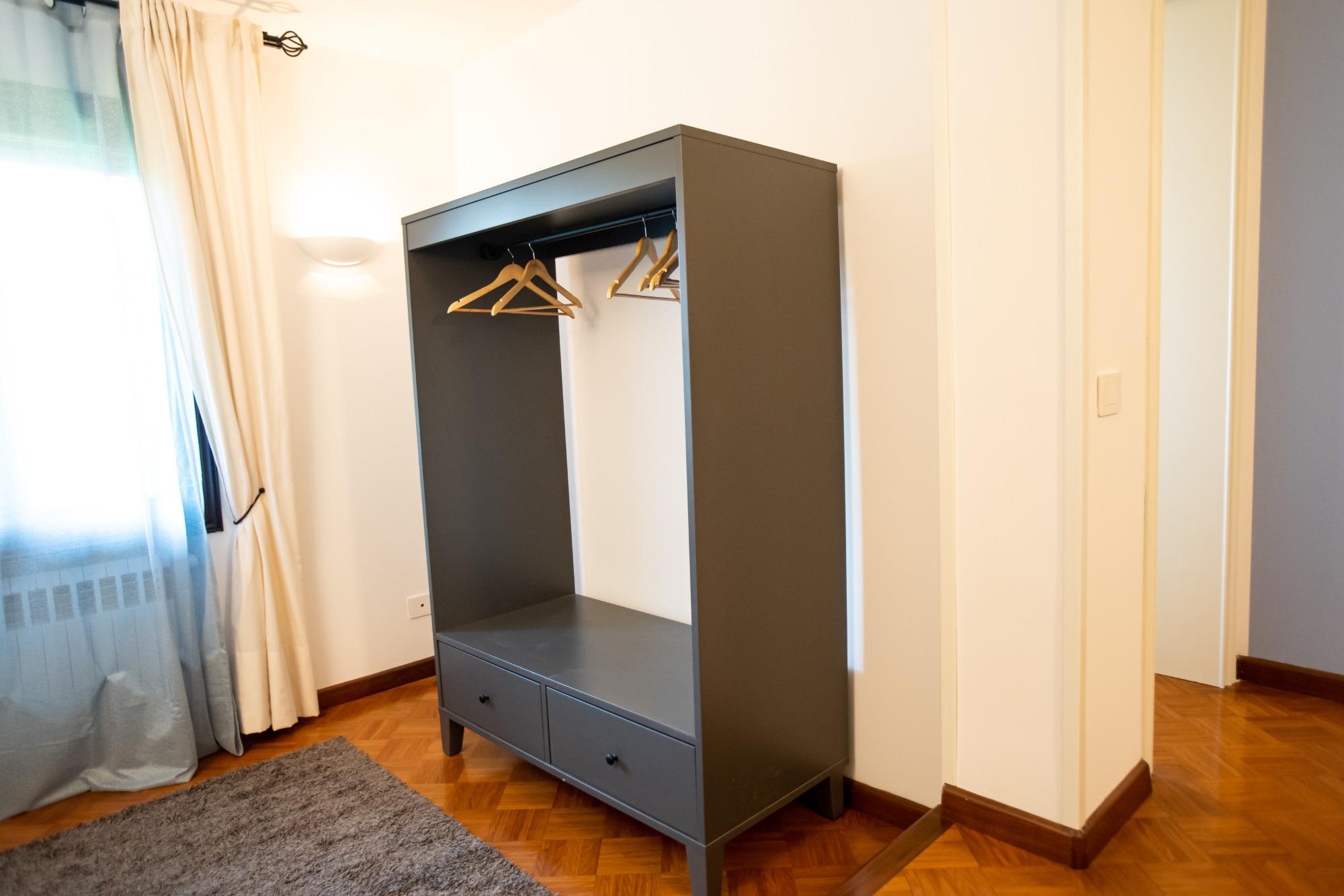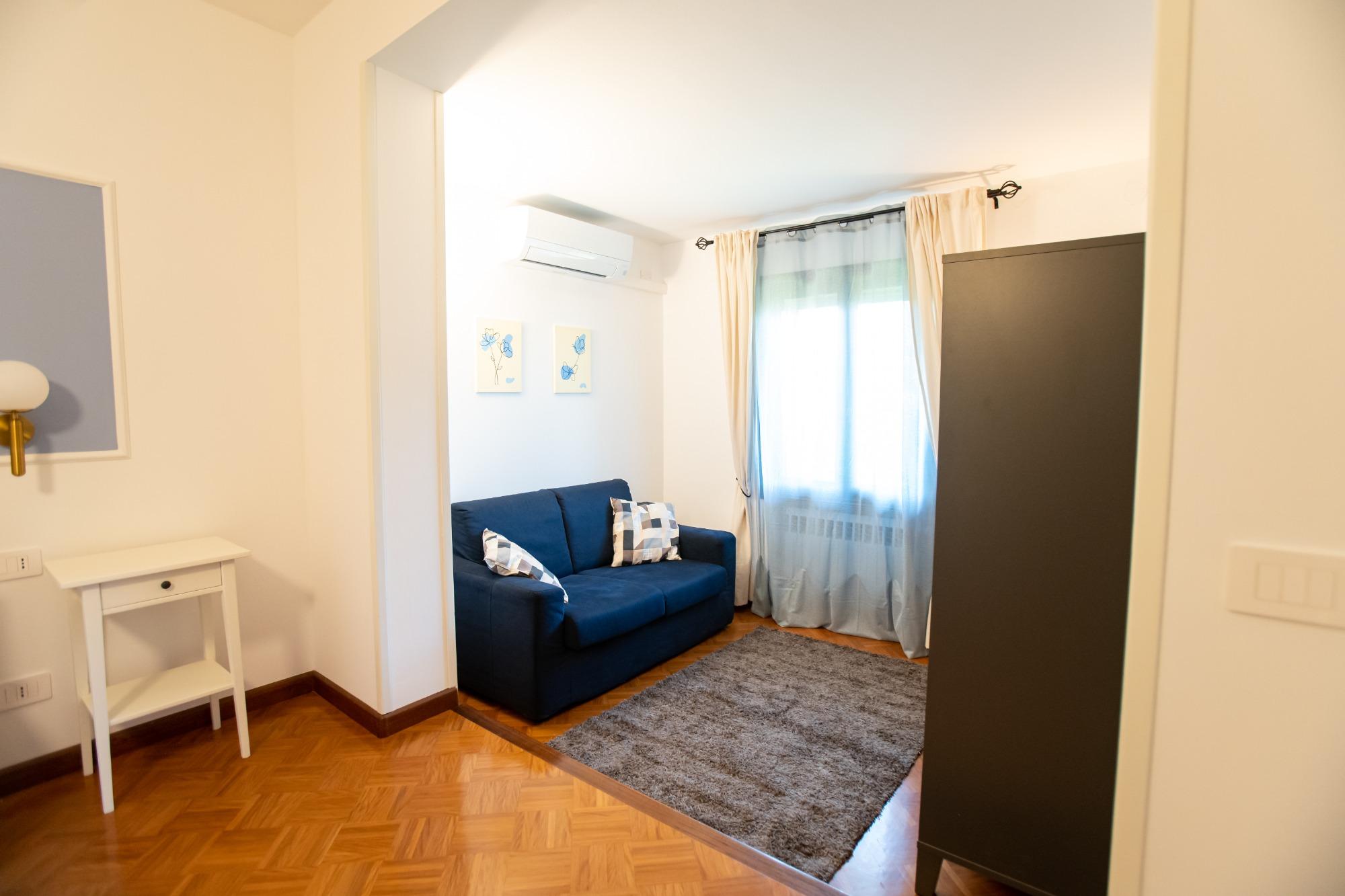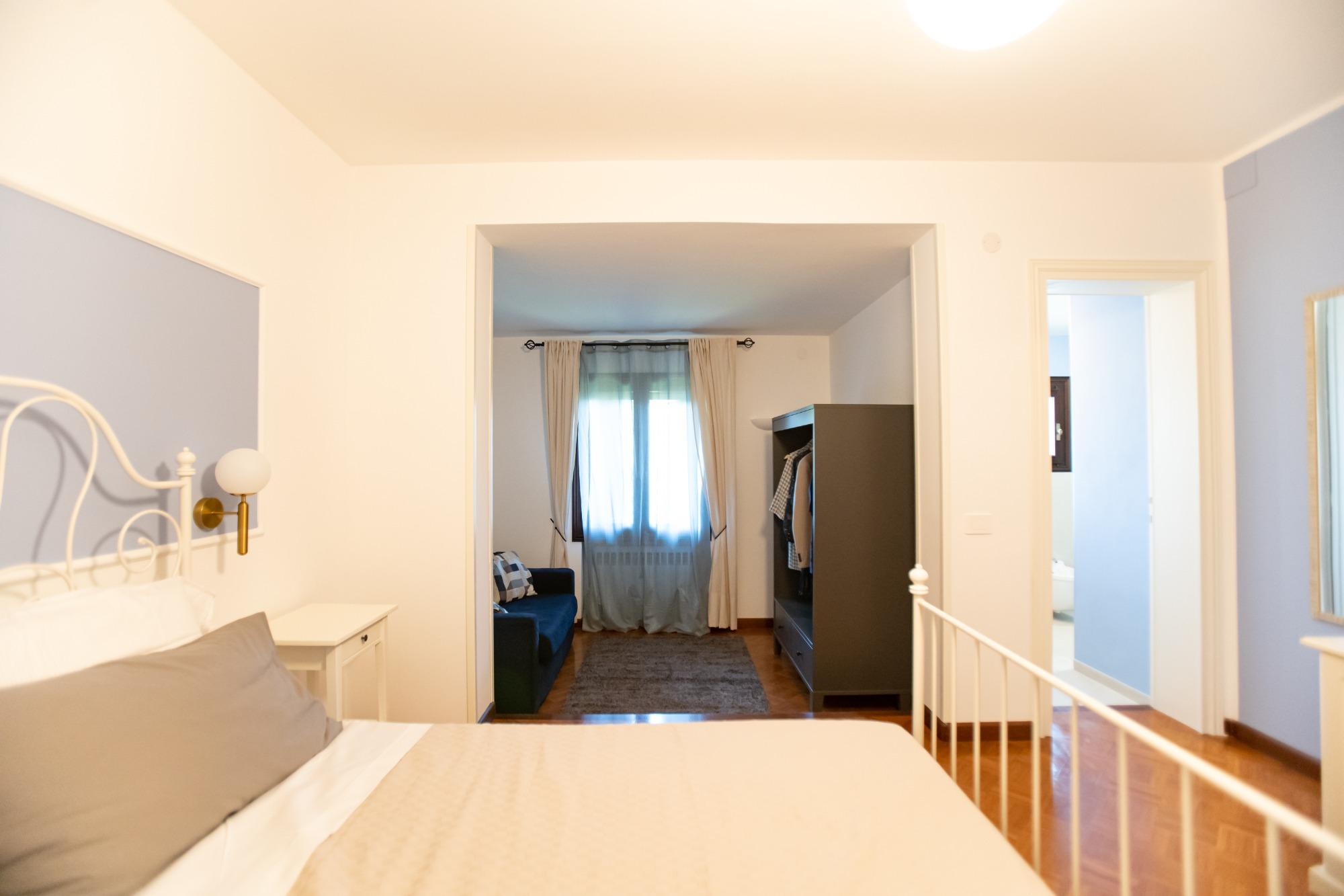 La camera "Porta Treviso" é un'accogliente camera singola, perfetta per viaggiatori singoli o soggiorni di lavoro. La stanza è arredata con gusto e dotata di tutti i comfort essenziali, tra cui un comodo letto singolo, armadio, scrivania e connessione Wi-Fi gratuita. Il bagno, ad uso esclusivo dell’ospite, si trova appena fuori dalla stanza (non condiviso con altri) ed è fornito di doccia, lavabo, WC, asciugacapelli e set di cortesia. La soluzione ideale per chi cerca privacy e funzionalità in un ambiente tranquillo e curato.