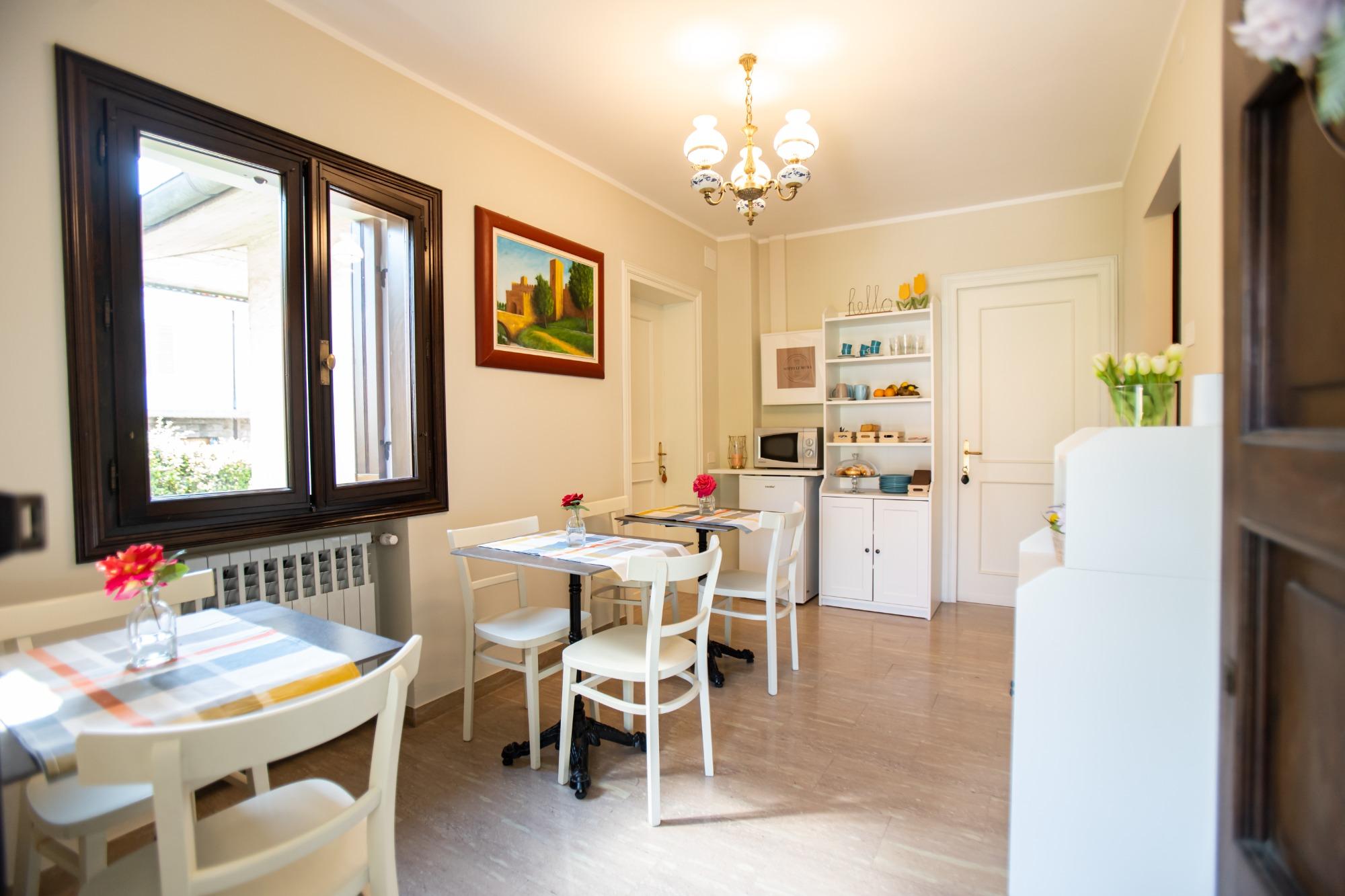 Le tre camere, luminose e raffinate, sono dotate di bagno privato, aria condizionata, Wi-Fi, TV e cassetta di sicurezza. Al risveglio, la colazione viene servita in un’accogliente sala interna o nel giardino durante la bella stagione. Nell'angolo colazioni saranno sempre disponibili dolci fatti in casa, marmellate, fette biscottate, tè e caffè. I prodotti freschi vengono invece selezionati direttamente dagli ospiti attraverso un modulo quotidiano, disponibile anche in formato digitale, per scegliere ciò che si desidera gustare tra brioches, yogurt, affettati, formaggi, uova e succhi.